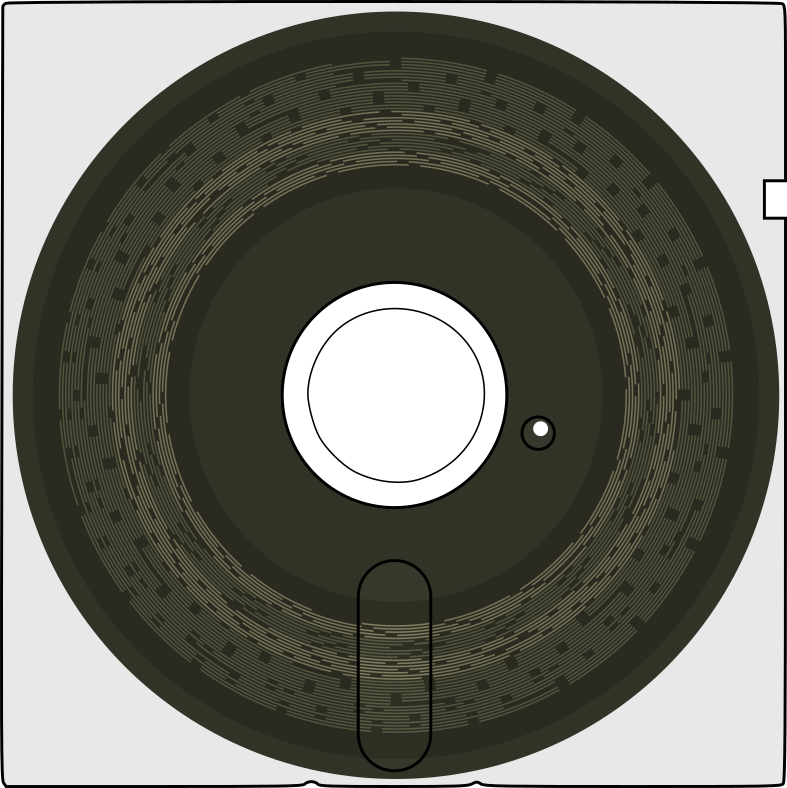 A more realistic view of a 5,25" floppy disk, with non-aligned tracks and slightly larger tail gaps at the end of a track.